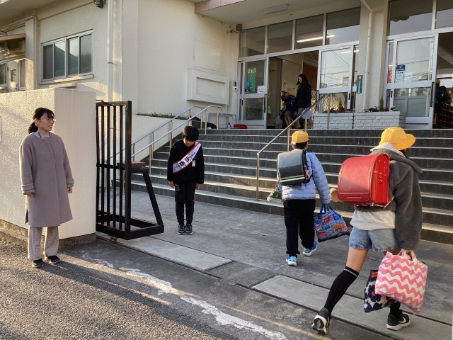 先週の生活目標「礼儀正しいあいさつをしよう」に続き、少しずつ自分から気持ちの良いあいさつができる姿を目指しています。