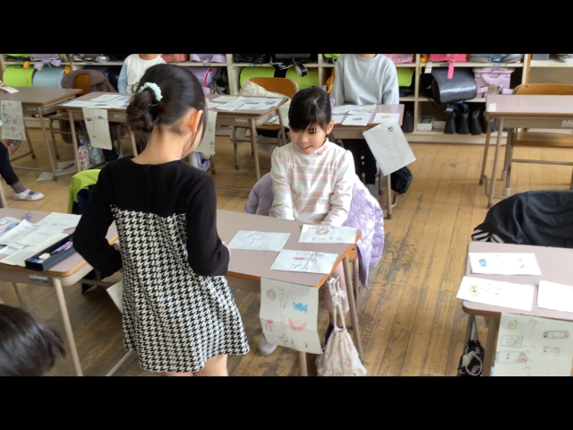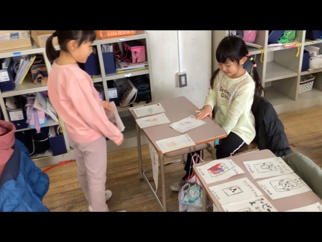 その学習のまとめとして、それぞれがお店の種類と商品を考え、お店やさんごっこを行いました。お客さんが「○○をください。」と欲しいものの名前を伝えてから買うルールで取り組むことで、楽しみながら学習内容の振り返りができました。