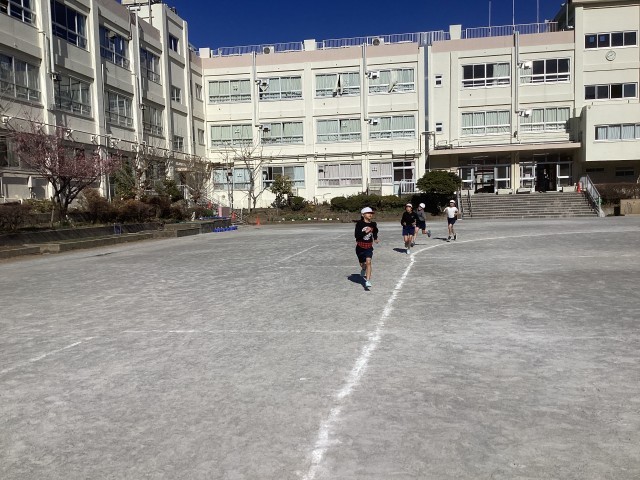 寒さに負けずに、持久走記録会を行いました。