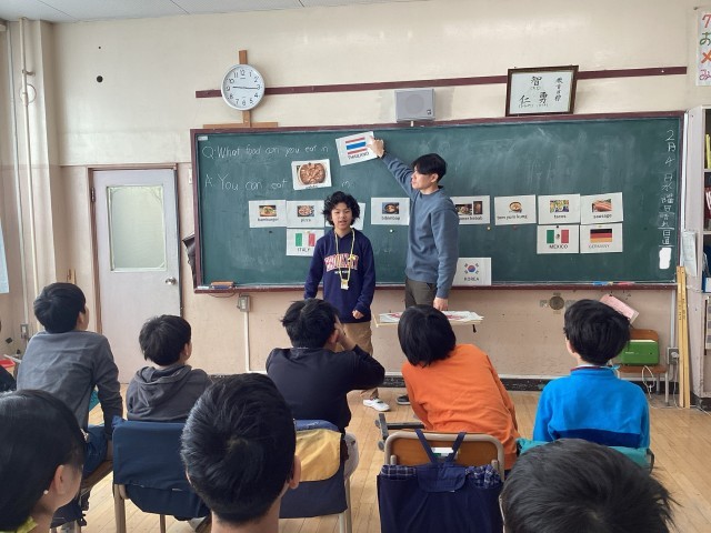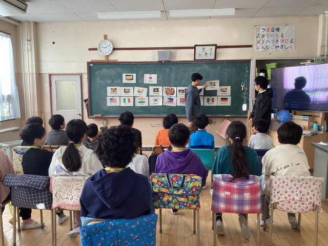 「What food can you eat in Italy?」と質問して、「You can eat pizza in Italy.」と答えました。いろいろな国のバージョンで答えているうちに、スムーズに言えるようになってきました。