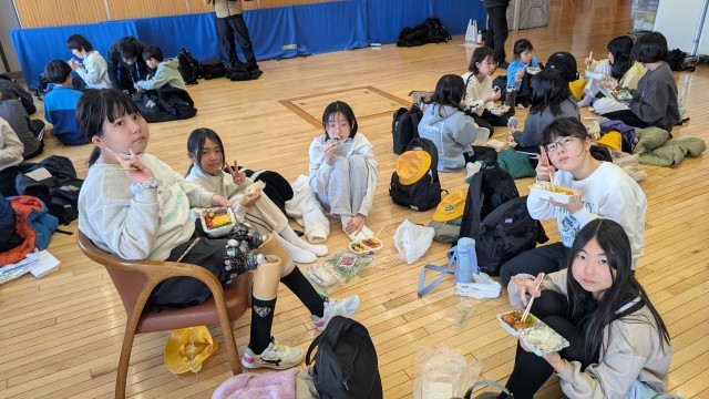 5年 ウインタースクール6 公開日 2026/02/17 更新日 2026/02/17 できごと 班ごとにお弁当タイムです。朝が早かったからか、バスに乗っているだけでもお腹が空いたらしく、みんなモリモリ食べています。 +1 いいね(11)