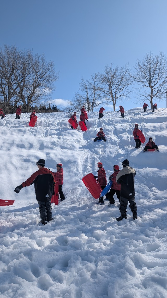 集合写真を撮ったあと、宿舎の敷地内で雪遊びです。