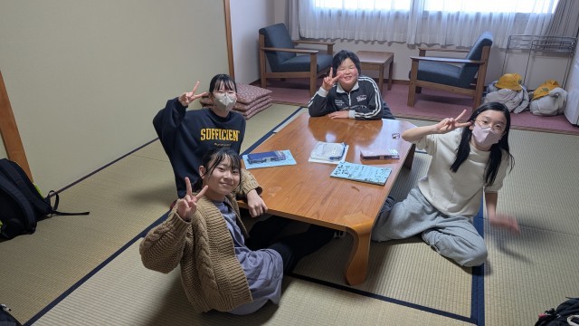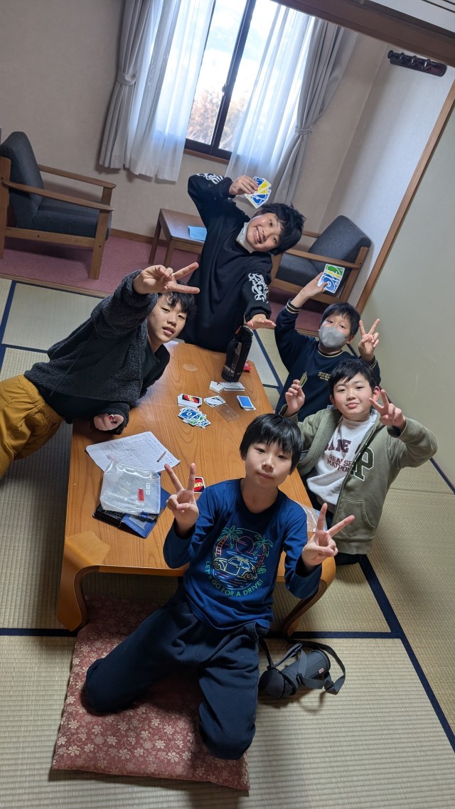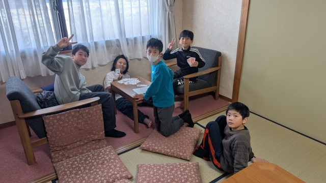 5年 ウインタースクール9 公開日 2026/02/17 更新日 2026/02/17 できごと 入浴が始まり、待っている間は、ゲームをしたり、おしゃべりしたり部屋ごとに過ごしています。食堂の位置を確認しにいく班もありました。 +2 いいね(9)
