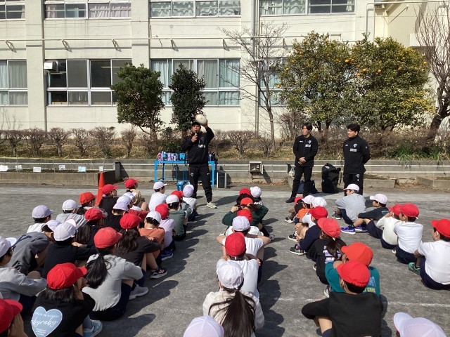 今週の体育では、クボタスピアーズ船橋・東京ベイの選手をお招きして、タグラグビーを行いました。
