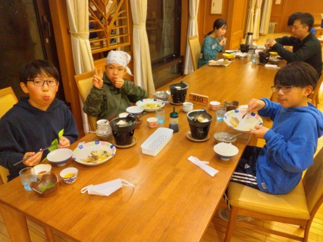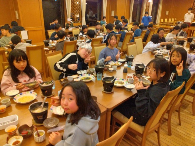 5年 ウインタースクール24 公開日 2026/02/18 更新日 2026/02/18 できごと たくさん身体を動かした一日だったので、ご飯が進みます。お刺身やお鍋など目でも楽しむことができ、疲れはどこへというくらい、箸が止まらない様子です。 +5 いいね(11)