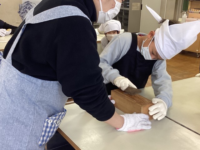 生活単元で、かつお節削り体験をしました。かつお節を触ってみると、とても固いことに驚いていました。