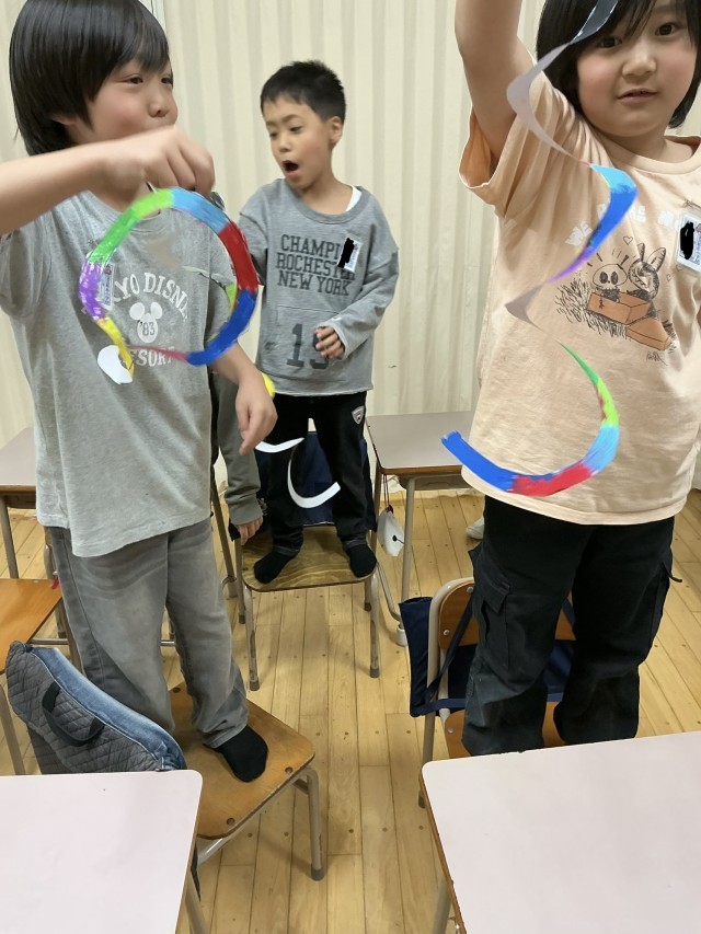 かぜのこ学級4年 図画工作科 「ぐるぐるを切ってみよう」