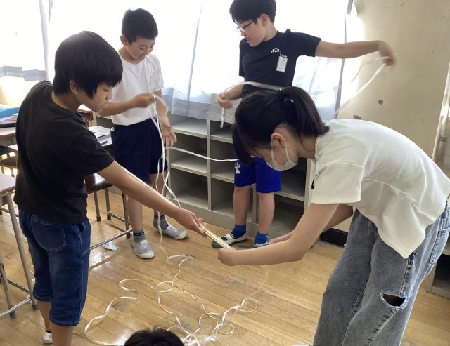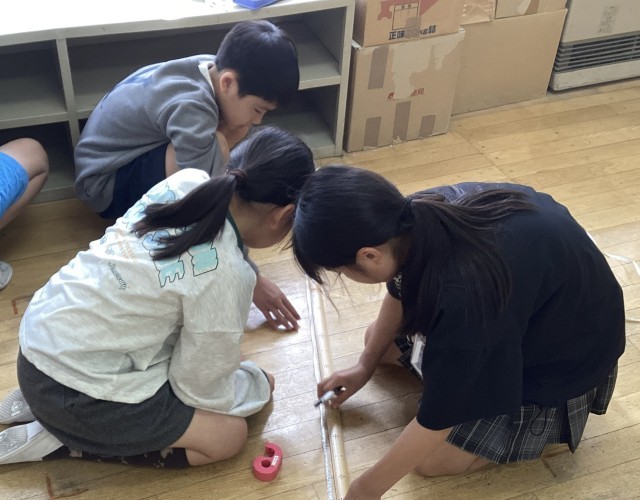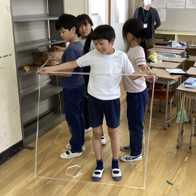 今日は、グループで1㎥の立方体を作ることに挑戦しました!