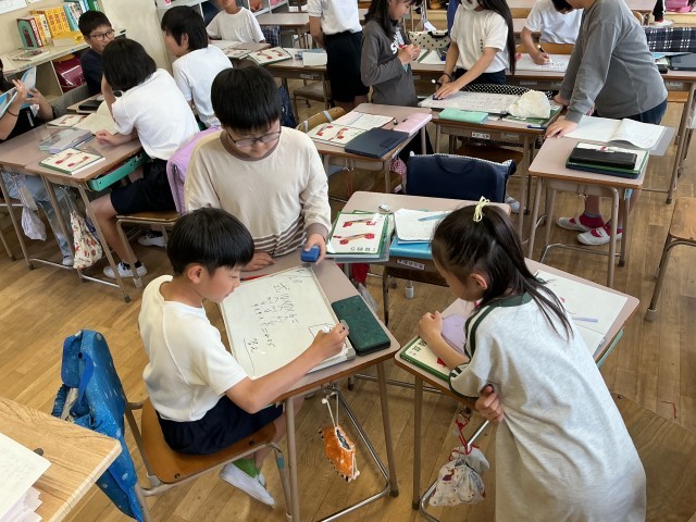 自分の考えを、班のみんなに伝え、どの方法が一番わかりやすいか検討しました。