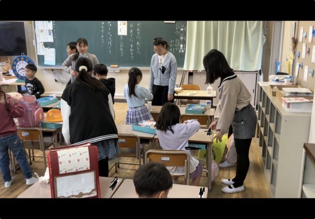 6年生は朝と給食の時間に1年生のお手伝いを行なっていました。