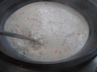 あじさい寒天ポンチにはクランベリージュースとアセロラジュースとぶどうジュースをそれぞれ使った三色の寒天を入れました。色とりどりで、とてもきれいです。さわやかな甘さが好評でした。