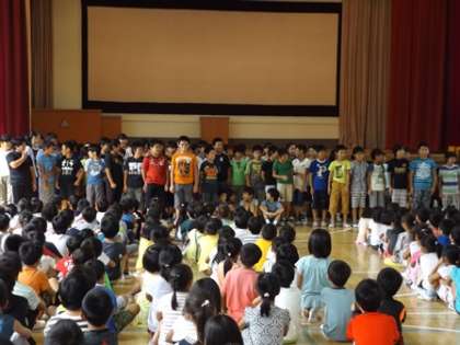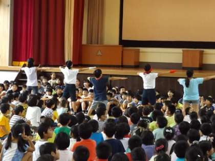 運動会の応援団もこの日に再結成し、全校児童で「頑張れー5年生!」と大きな声で応援しました。