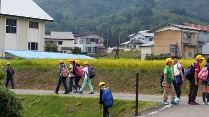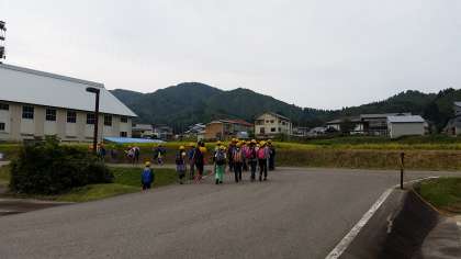 迷子にならないように、もちろんケンカもしないように、行ってらっしゃい。今、ウォークラリー最後のグループが出発しました。