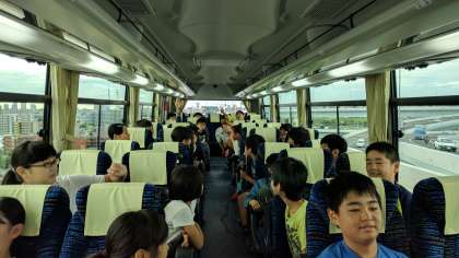 首都高速に入って、バス内ではレクレーションで盛り上がっています。