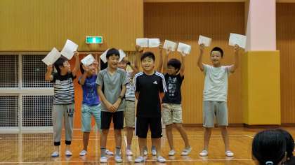 工夫を凝らした班発表や人間借り物競走などで盛り上がっています!