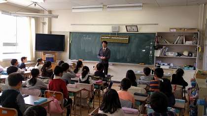 3年生の算数に時間に、そろばんの先生を招いて、そろばん教室がありました。