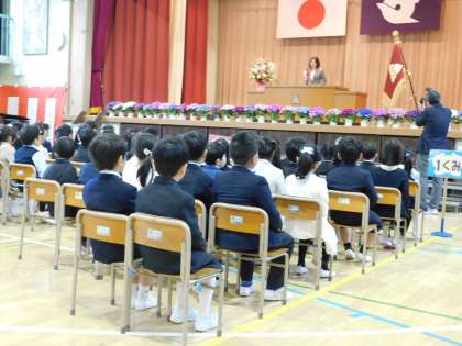 式では2年生・6年生から歌やお祝いの言葉が送られました。