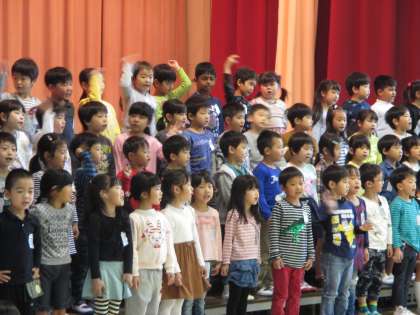 最後はみんなで校歌を唄いました。1年生も校歌を唄えていて、先生達も驚いていました。
