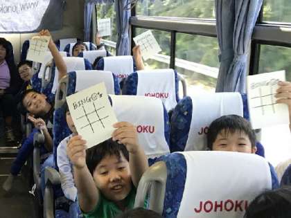 5年生 セカンドスクール1日目03 公開日 2019/09/10 更新日 2019/09/10 できごと バスの中では,レク係を中心に楽しく過ごしています。「リーチ!」「ビンゴ!」と元気な声が飛び交います。それでも,しっかりシートベルトはしています。 いいね(0)