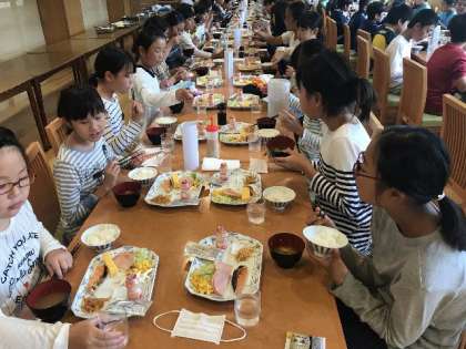 おはようございます。2日目のスタートです。なかなか眠れなかった子もいたようです。それでも,元気に食べるのがこの5年生です。