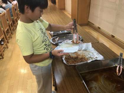 カレーライス→マス塩焼きと,今日はたくさん食べました。それにもかかわらず,夕食もおかわりを何度もするなど,食欲旺盛でした。