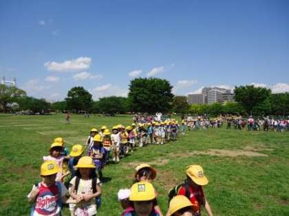遠足では多くの場面できょうだい学級で活動し、木場公園で一緒に遊んだり、お弁当を食べたりと、たくさん交流することができました。