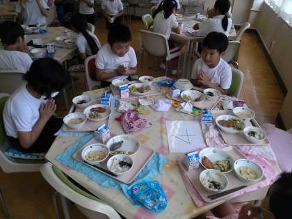 昨日は2組が、今日は1組が ランチルーム給食でした。