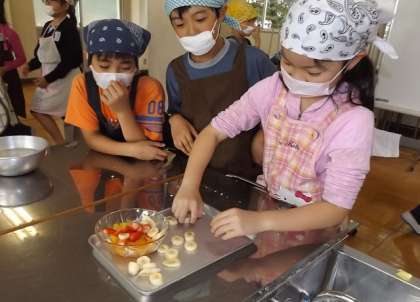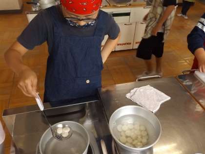 フルーツ白玉 #1 公開日 2014/05/14 更新日 2014/05/14 できごと 5年生2回目の調理実習は,「フルーツ白玉」でした。バナナやピーチを切るときには,初めて包丁も使いました。 いいね(0)