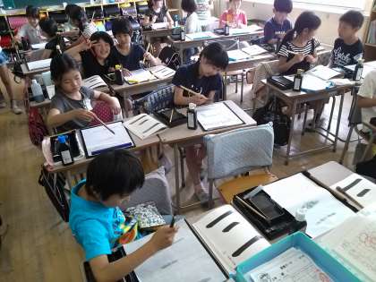 来週また時間を長めにとって、墨汁で書く練習と片づけのしかたを学習したいと思います。