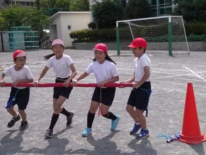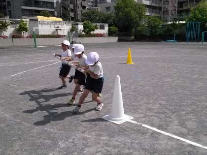さすが初体験なだけあり、すごくスローな停滞型のハリケーンでした。棒を落として友達の頭に当ててしまったり、4人組で走るのに一人だけおいていかれたりと、被害(?)も甚大。次回、練習するときは“猛烈な勢いで通り抜ける”ハリケーンになることを期待しています。