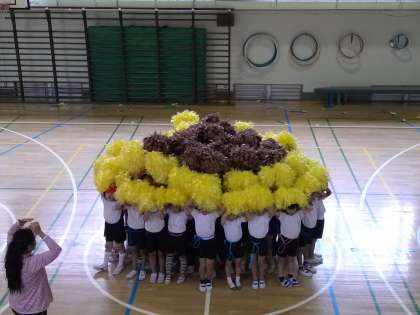 先生「3年生のおかあさんたちが、みんなのポンポンを作ってくれたんだよ。」