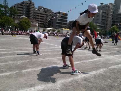 暑い中、よくがんばりました。パレードのダンスも、なわとびや逆立ちも、馬とびもポンポンもとってもかわいかったです。