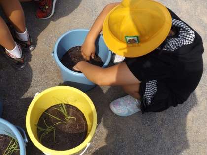 田植えをしました 公開日 2014/06/04 更新日 2014/06/03 できごと 5年生は,総合的な学習の時間に「バケツ稲」に取り組みます。今日は,田植えをしました。もみも発芽させましたが,まだ生育が不十分のため,苗は鶴岡農協から頂いたものを使いました。 いいね(0)