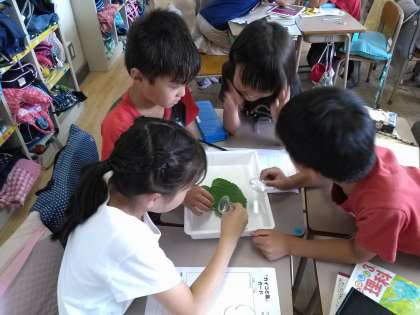 児童 「どういたしまして。たくさん葉っぱを食べて大きくなってね。私も給食を残さずに食べるよ。」