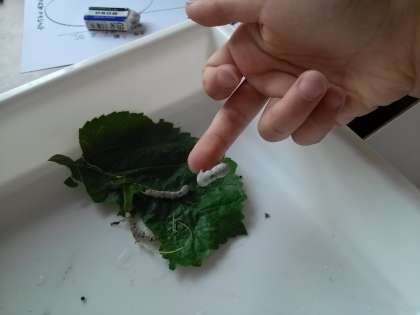 カイコ「ムシャムシャ。くわの葉はおいしいな。いつもエサをくれてありがとう。」