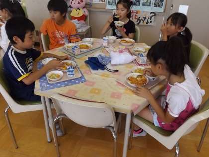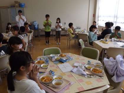 ランチルームでの給食です 公開日 2014/06/12 更新日 2014/06/12 できごと 本校では,学期に1回,ランチルームで給食を食べる機会があります。6月は,5年生です。いつもおいしい本校の給食ですが,それがさらにワンランクアップします。 いいね(0)
