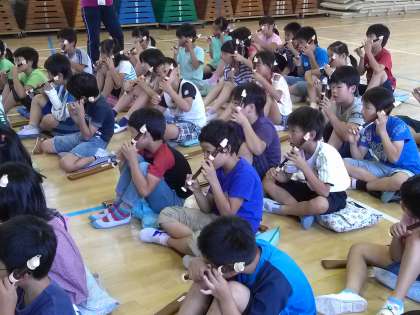 リコーダー協会から来た講師の先生と一緒にソプラノリコーダーの学習をしました。