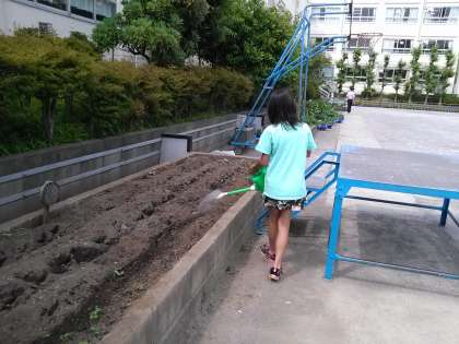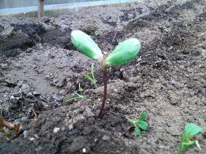 畑を見てみると、先週種まきした小松菜・オクラ・ホウセンカ・ひまわりの芽が。
