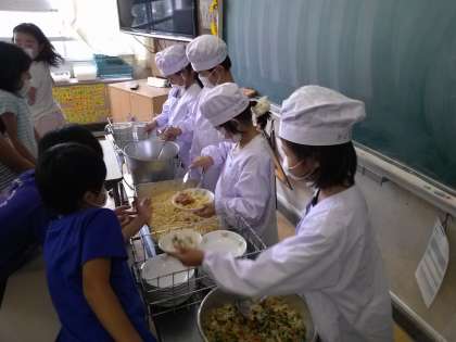 給食 公開日 2014/06/24 更新日 2014/06/24 できごと 3年生 6月24日(火) 給食当番は白衣を着て、マスクをして、配膳します。 今日はメインはスパゲッティ。 オレンジや牛乳のおかわりじゃんけんもあり、白熱の給食時間でした。 いいね(0)