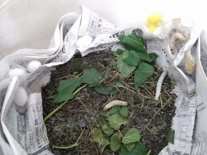 週が明け、また子どもたちが かいこを持って登校して来ました。