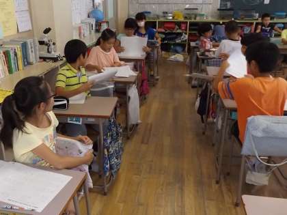 5年生は,本日,東京都教育委員会による「児童・生徒の学力向上を図るための調査」がありました。中学校の期末テストのような雰囲気の中,妙に緊張しているようでした。4教科終わったとき,「フ〜ッ」といったため息がもれました。今回の結果は,今後の指導に生かして参ります。