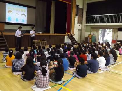 ネット安全教室 公開日 2014/07/04 更新日 2014/07/04 できごと 5年生は,今日,「ネット安全教室」がありました。NTT東日本の方がいらっしゃり,ネットを使うときのマナー,危険性について教えてくださいました。ご多用のところ,ありがとうございました。 いいね(0)
