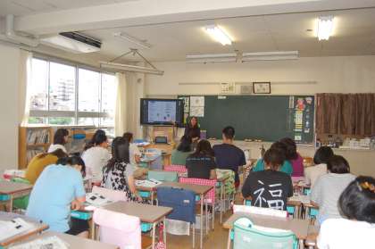 2学期から各教室には電子黒板が導入され、放課後に学校職員向けの操作方法の研修会がありました。