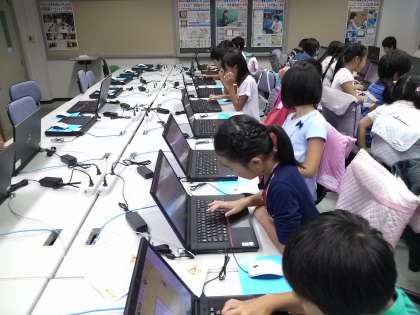 キーボードを打つ練習です。3年生ではローマ字を習うので、キーボードもローマ字入力。