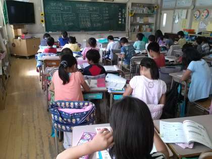午後はプールに入りました。プールの玄関で「さようなら」をしたので、教室に戻ってランドセルを背負った子から下校です。