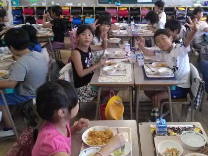 記事と関係ありませんが、写真は、おいしくチキンライスを食べる3年生たちです。