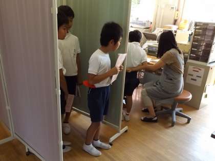 5年生は,16日(火)から3泊4日で,新潟県魚沼市に「セカンドスクール」に行きます。今日は,そのための“事前健診”がありました。校医さんからは,無事,全員OKを頂きました。その後,体育館で,この3連休の過ごし方を先生から聞いて,下校しました。