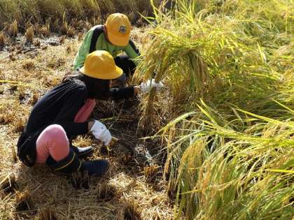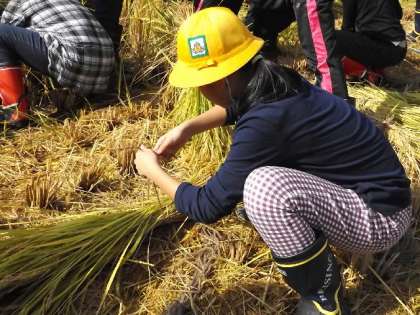 セカンドスクール(1日目)#12 公開日 2014/09/16 更新日 2014/09/16 できごと 稲刈りは,ほとんどの子が“初めて”でした。安全にできるよう,インストラクターの先生の指示をしっかり守りました。束ねるときは,しっかりそろえていました。 いいね(0)
