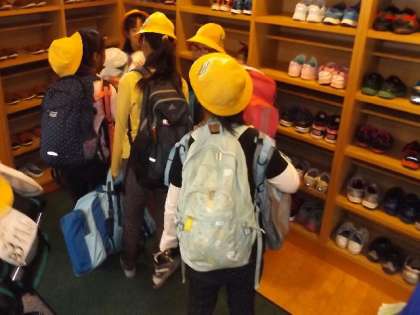 宿舎には,整然と入りました。順序正しく,くつ箱に下ばきをしまっていました。