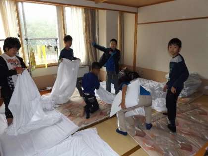 セカンドスクール(2日目))#02 公開日 2014/09/17 更新日 2014/09/17 できごと みんな一緒に,検温→着替え→布団たたみ→洗顔といった順序で行動しています。洗面所は狭いですが,譲り合って使っています。 いいね(0)